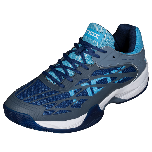 NOX AT10 Lux padelsko er stilige og funksjonelle padelsko for menn, designet for ytelse på banen. Disse skoene har en elegant fargekombinasjon som er både iøynefallende og allsidig. Det lette designet og de fleksible materialene gir maksimal komfort og støtte under intense kamper.