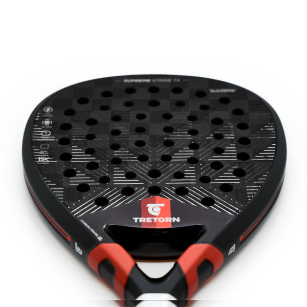Opplev kraften til SUPREME STRIKE TX! Designet med presisjon og innovasjon for å gi deg en fordel i det offensive spillet ditt. SUPREME STRIKE TX er utviklet for erfarne spillere. Racketen er utstyrt med en 15K karbonfiberlag fra svenske TeXtreme®, som er et tynnere, sterkere og mer holdbart overflatelag som gir en raskere respons sammenlignet med tradisjonelle karbonfiberkonstruksjoner. Opplev en ny nivå av hastighet og sensasjon i hvert slag. Med vår EVA POWER-kjerne og en høy sweetspot, blir resultatet en ekstremt responsiv power-racket for spillere som hovedsakelig bruker sin offensive spillestil for å dominere spillet. Enten du slipper løs en tordnende smash eller utfører et perfekt plassert drop shot, leverer SUPREME STRIKE TX en fremragende ytelse med hvert slag. Racketen er også utstyrt med et DUAL-hole mønster som optimaliserer racketens kontaktpunkter, og øker evnen til kontrollerte slag selv når du treffer utenfor racketens sweetspot. Resultatet? Konsistent kraft og presisjon som lar deg bestemme spillets tempo. I tillegg har racketen et multidireksjonalt 3D-dekal, strategisk utformet for å forbedre spinnen på alle typer slag, og bringer en ny grad av eleganse som forvirrer motstanderne dine og får dem til å gjette hva ditt neste trekk blir.